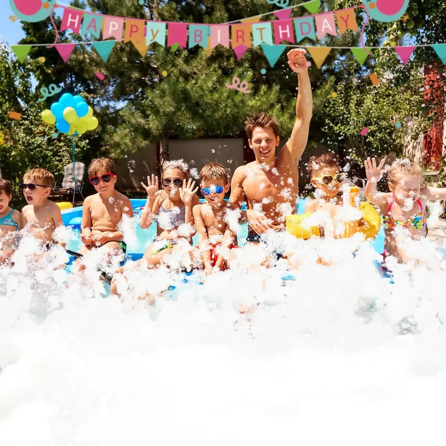 Our foam is safe, non-toxic, and biodegradable, making it ideal for kids’ parties or family days where parents can relax knowing everyone’s having fun. The dense, long-lasting bubbles create a soft, clean foam that looks incredible in photos and washes away easily with water.
